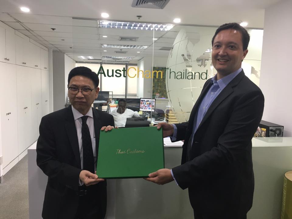 Earlier in the same week, on the 10th of January, in his capacity as Director responsible for Government Affairs at the Australian-Thai Chamber of Commerce, Mr. Larkin presented a written submission to a delegation from the Thai Customs Department, led by Kulit Sombatsiri, the Director General. The submission, which was based on the feedback of Austcham members, focused on a number of key issues facing Australian businesses in Thailand. This included consistency in customs procedures and directives, as well as illegal smuggling and intellectual property issues surrounding the branding of Australian and New Zealand produce sold into Thailand.